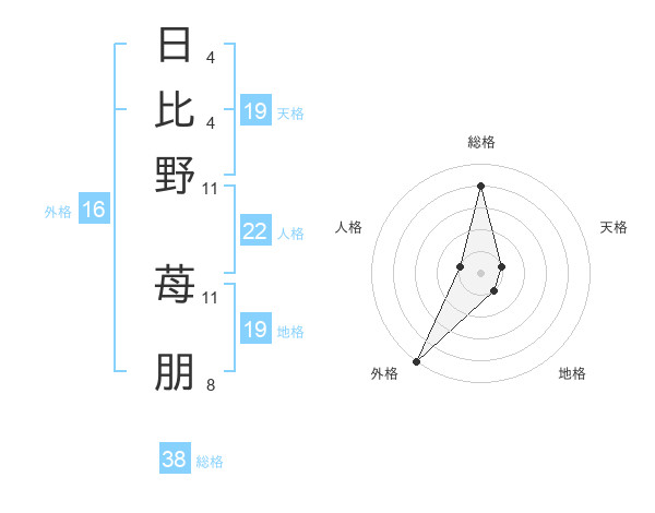 日比野 苺朋さんを姓名の画数から五運を鑑定