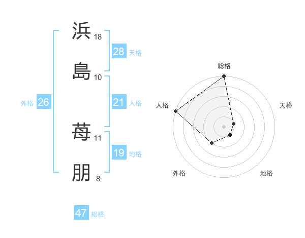 浜島 苺朋さんの総格は47画の5点!