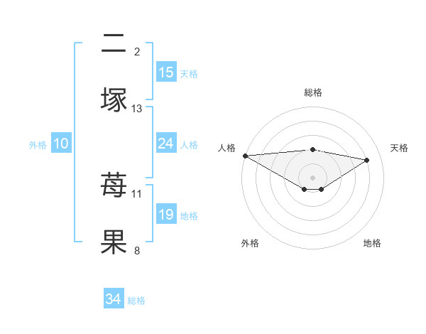 二塚 苺果さんを姓名の画数から五運を鑑定