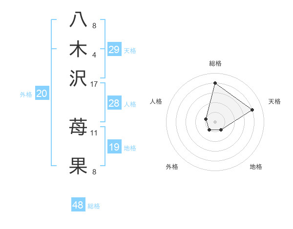 八木沢 苺果さんの総格は48画の4点!