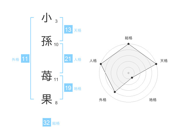小孫 苺果さんを姓名の画数から五運を鑑定