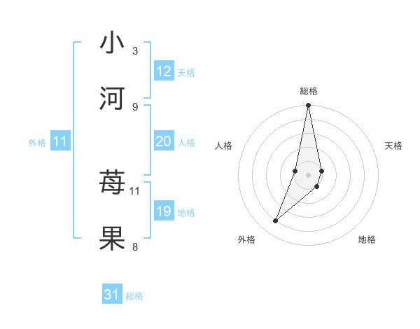 小河 苺果さんの総格は31画の5点!