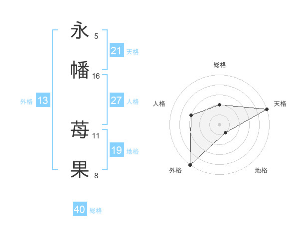 永幡 苺果さんを姓名の画数から五運を鑑定