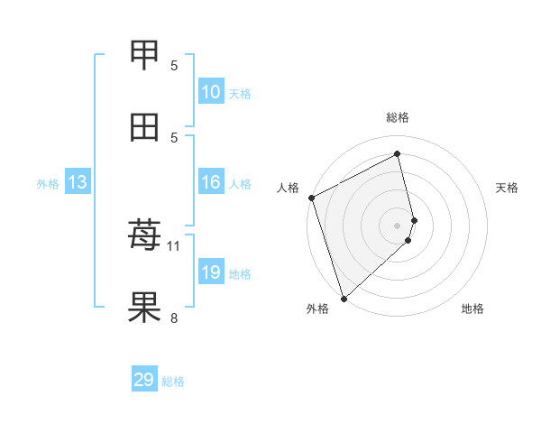 甲田 苺果さんの外格は13画の5点!