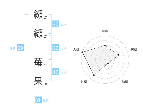 纐纈 苺果さんの総格は61画の3点!