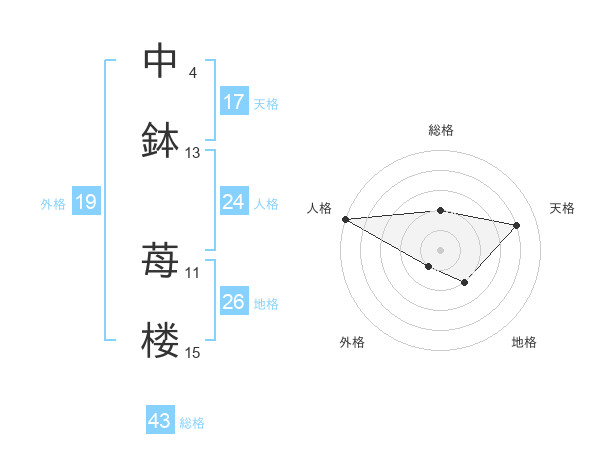 中鉢 苺楼さんの天格は17画の4点!