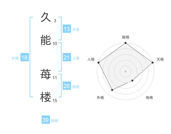 久能 苺楼さんを姓名の画数から五運を鑑定