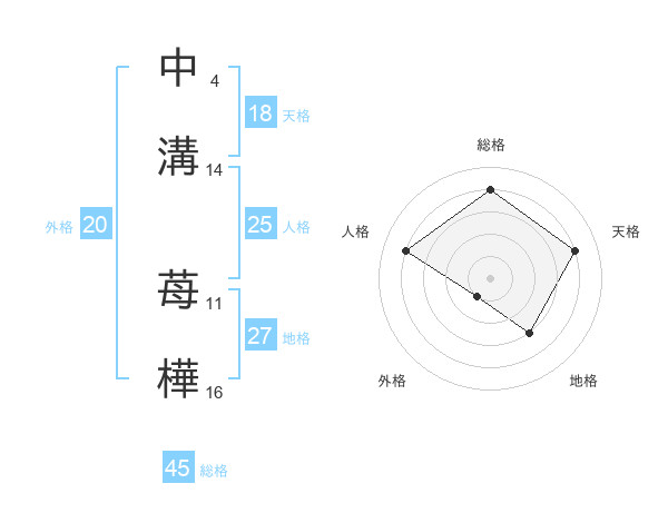 中溝 苺樺さんの総格は45画の4点!