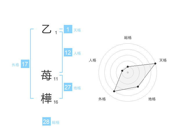 乙 苺樺さんの総格は28画の1点!