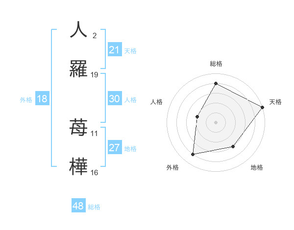人羅 苺樺さんの総格は48画の4点!