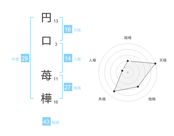 円口 苺樺さんを姓名の画数から五運を鑑定