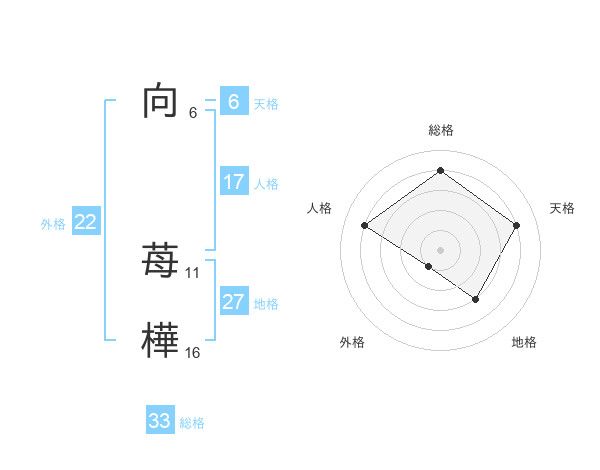 向 苺樺さんの総格は33画の4点!