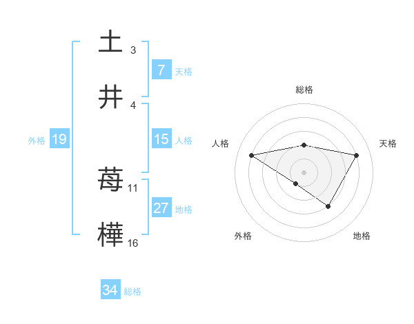土井 苺樺さんを姓名の画数から五運を鑑定