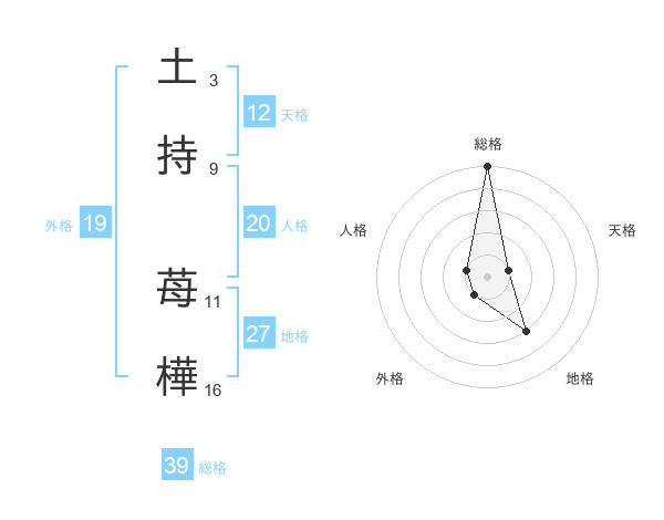 土持 苺樺さんの総格は39画の5点!