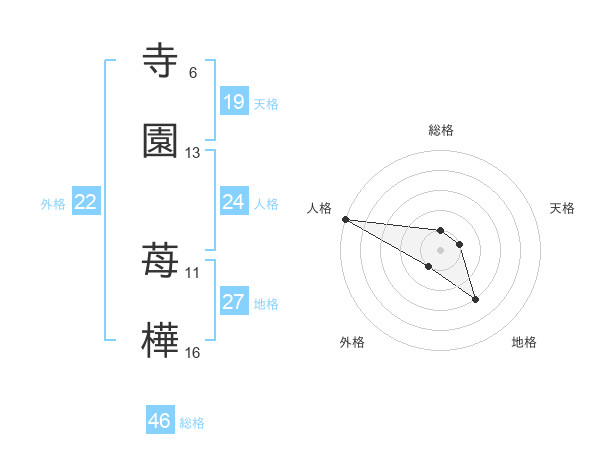 寺園 苺樺さんを姓名の画数から五運を鑑定