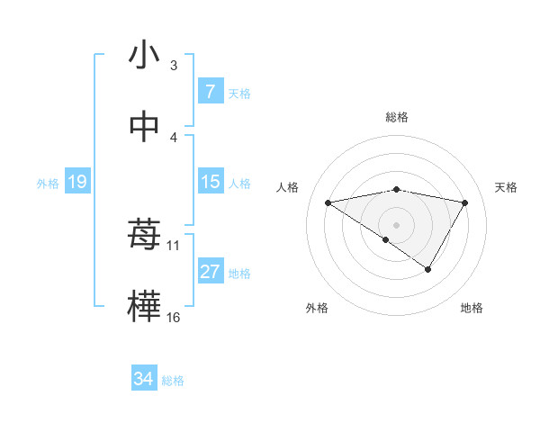 小中 苺樺さんを姓名の画数から五運を鑑定