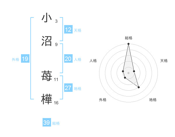 小沼 苺樺さんを姓名の画数から五運を鑑定
