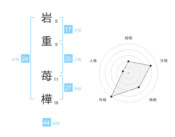 岩重 苺樺さんを姓名の画数から五運を鑑定