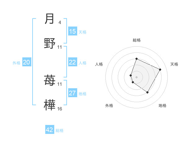 月野 苺樺さんの天格は15画の4点!