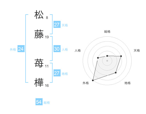 松藤 苺樺さんの総格は54画の1点!
