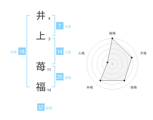 井上 苺福さんの総格は32画の5点!