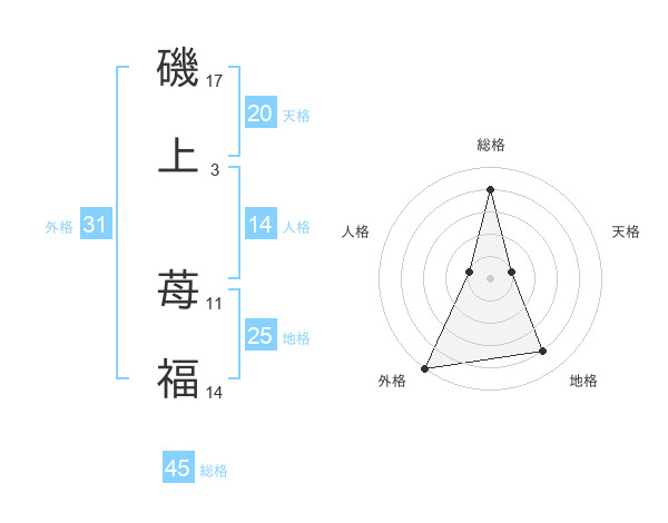 磯上 苺福さんの外格は31画の5点!