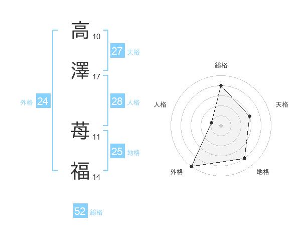 高澤 苺福さんを姓名の画数から五運を鑑定