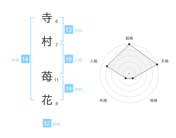 寺村 苺花さんの総格は32画の5点!