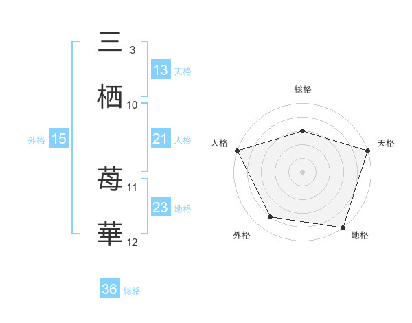 三栖 苺華さんの天格は13画の5点!
