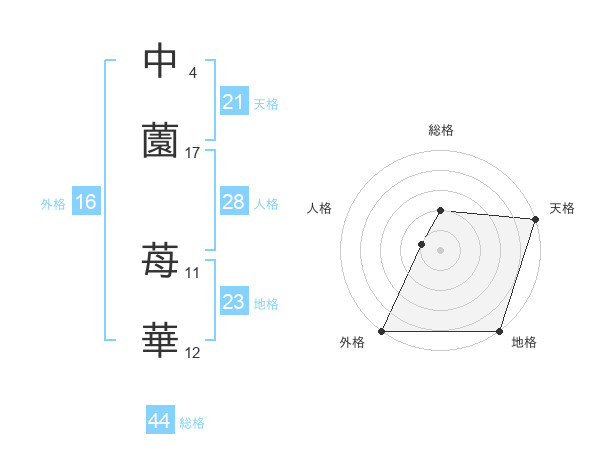 中薗 苺華さんを姓名の画数から五運を鑑定