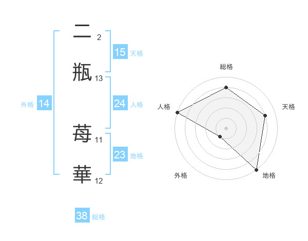 二瓶 苺華さんの総格は38画の4点!