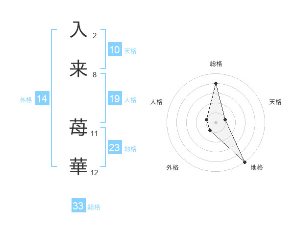 入来 苺華さんの総格は33画の4点!
