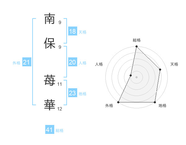 南保 苺華さんの外格は21画の5点!