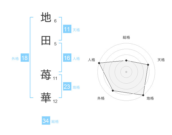 地田 苺華さんの総格は34画の2点!