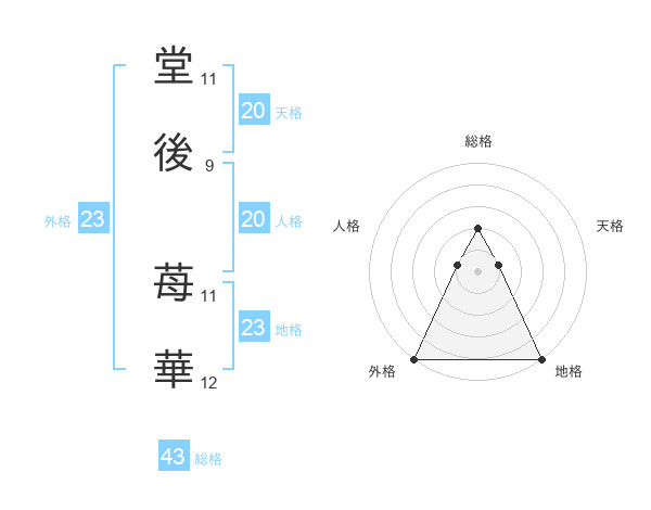 堂後 苺華さんの外格は23画の5点!