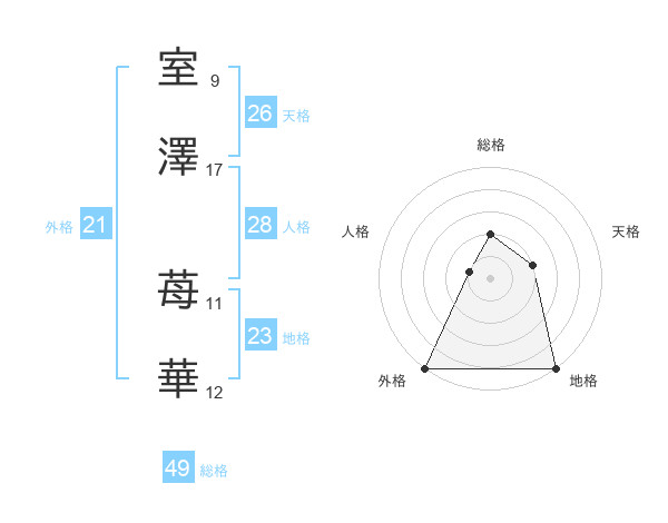 室澤 苺華さんの総格は49画の2点!