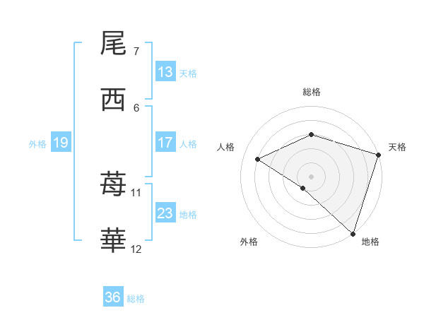尾西 苺華さんの天格は13画の5点!