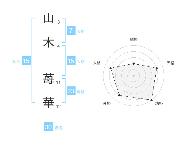 山木 苺華さんの総格は30画の2点!