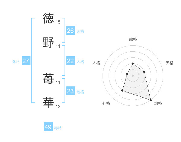 徳野 苺華さんの総格は49画の2点!