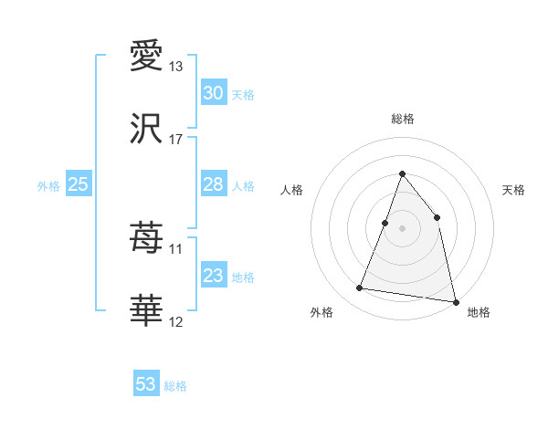 愛沢 苺華さんを姓名の画数から五運を鑑定
