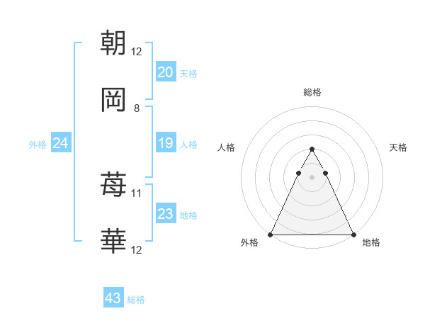 朝岡 苺華さんの天格は20画の1点!