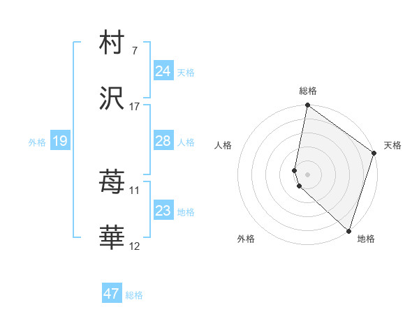 村沢 苺華さんの総格は47画の5点!