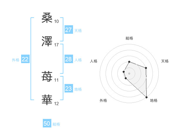 桑澤 苺華さんの総格は50画の2点!