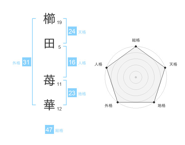 櫛田 苺華さんの天格は24画の5点!