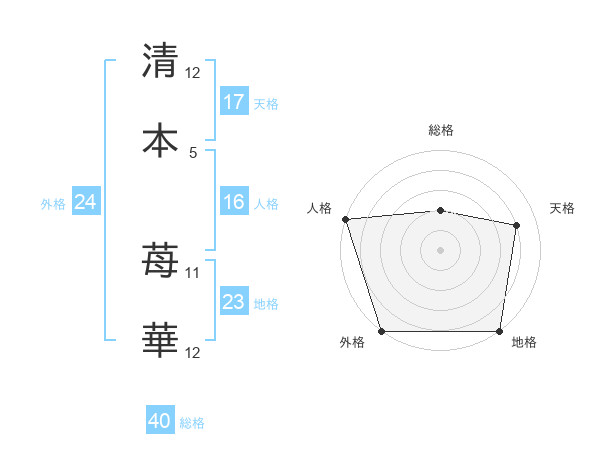 清本 苺華さんの外格は24画の5点!