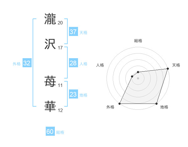 瀧沢 苺華さんを姓名の画数から五運を鑑定