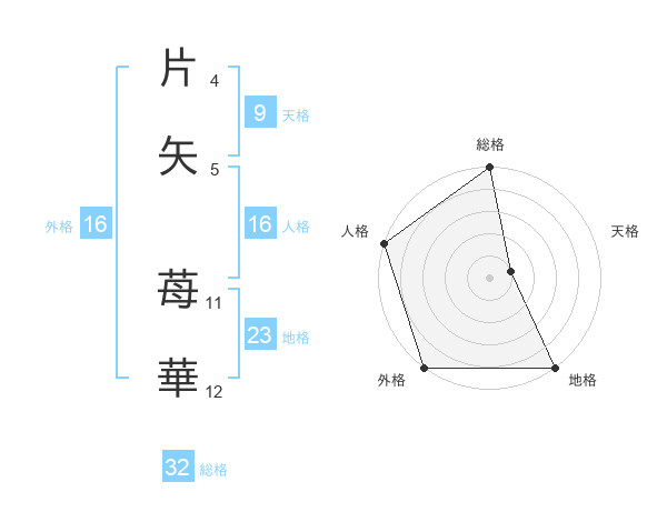 片矢 苺華さんの総格は32画の5点!