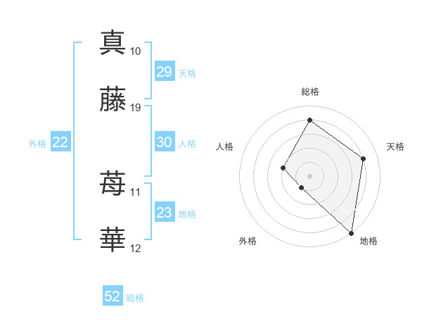 真藤 苺華さんの総格は52画の4点!