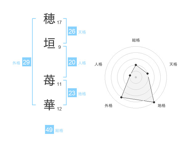 穂垣 苺華さんを姓名の画数から五運を鑑定