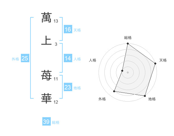 萬上 苺華さんを姓名の画数から五運を鑑定